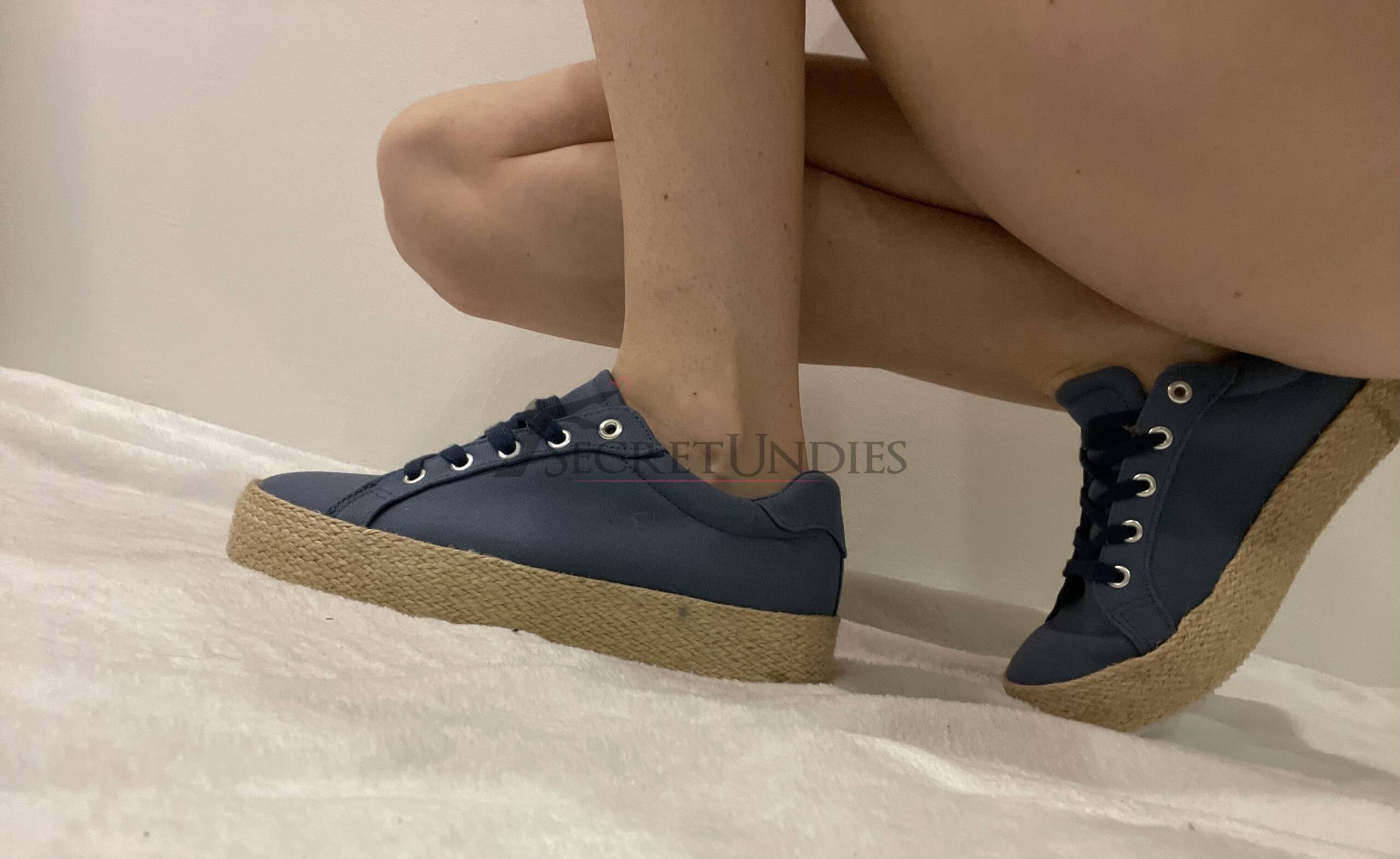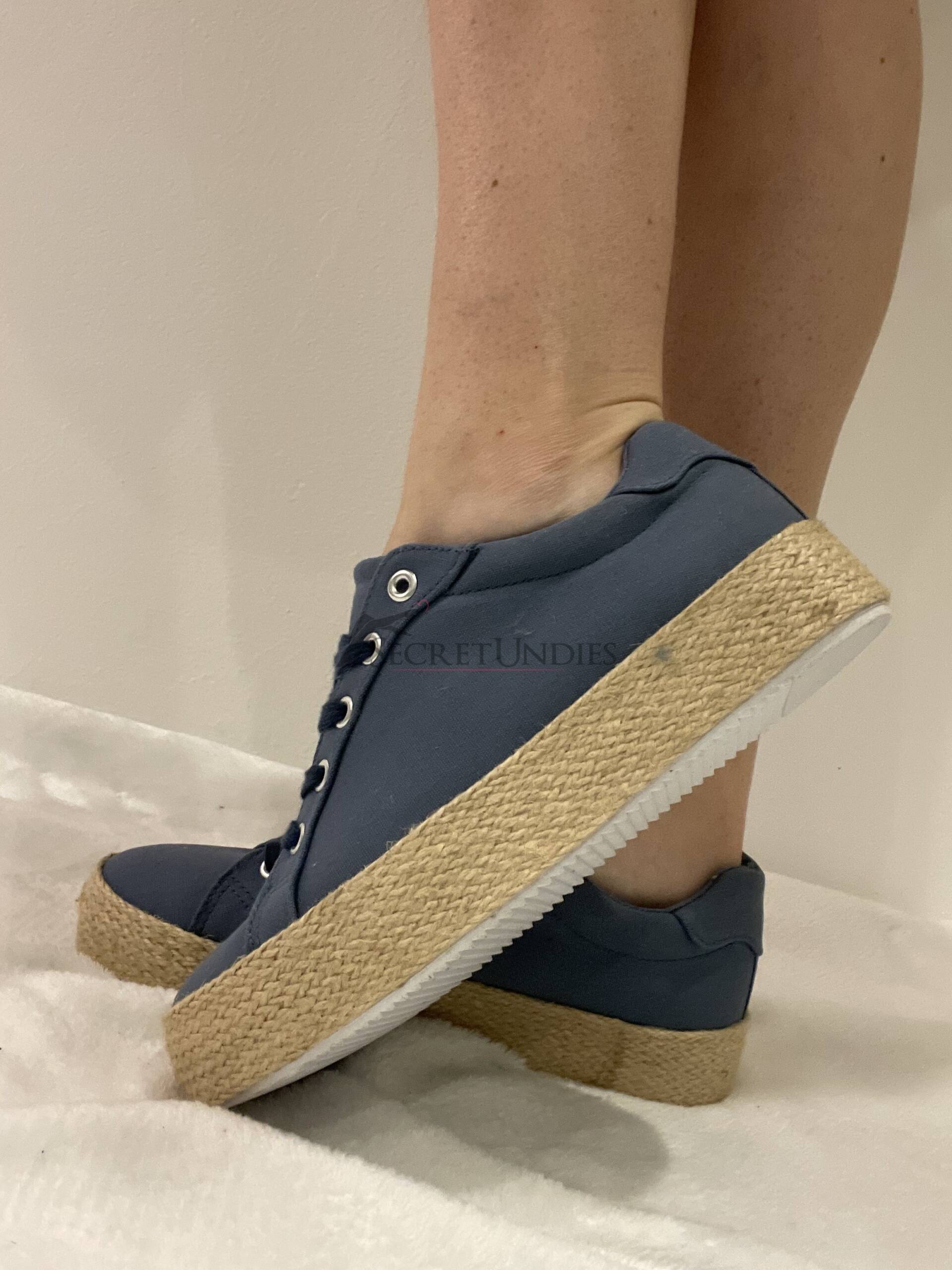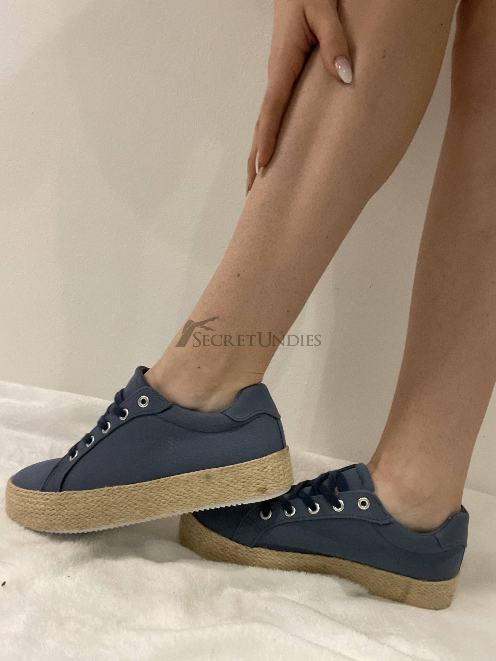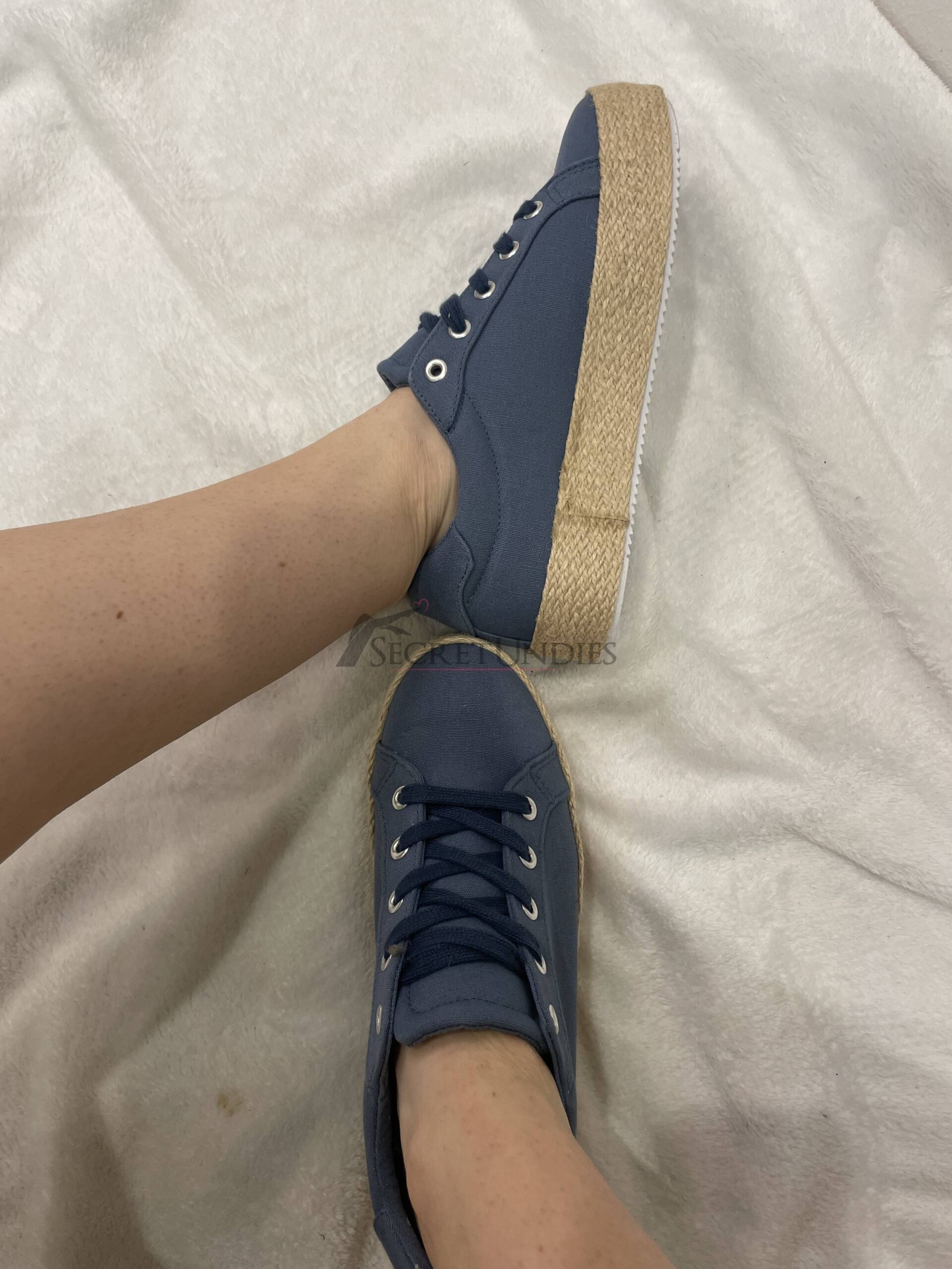 Flache Sommerschuhe in Blau mit geflochten wirkendem Rand an der Sohle. Mit Schnürung zum Reinschlüpfen, sehr weich und komfortabel. Luftig, flexibel und gut eingelaufen.