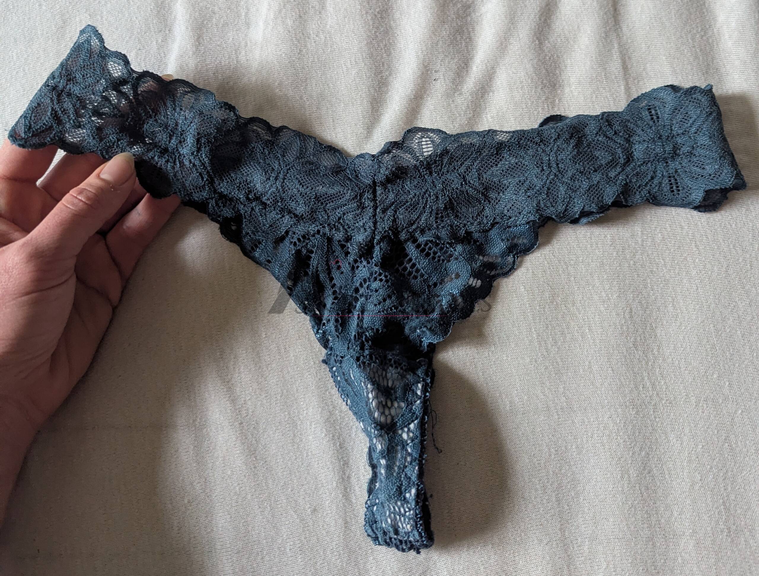 This blue lace thong feels soft, delicate and beautifully highlights my natural curves.