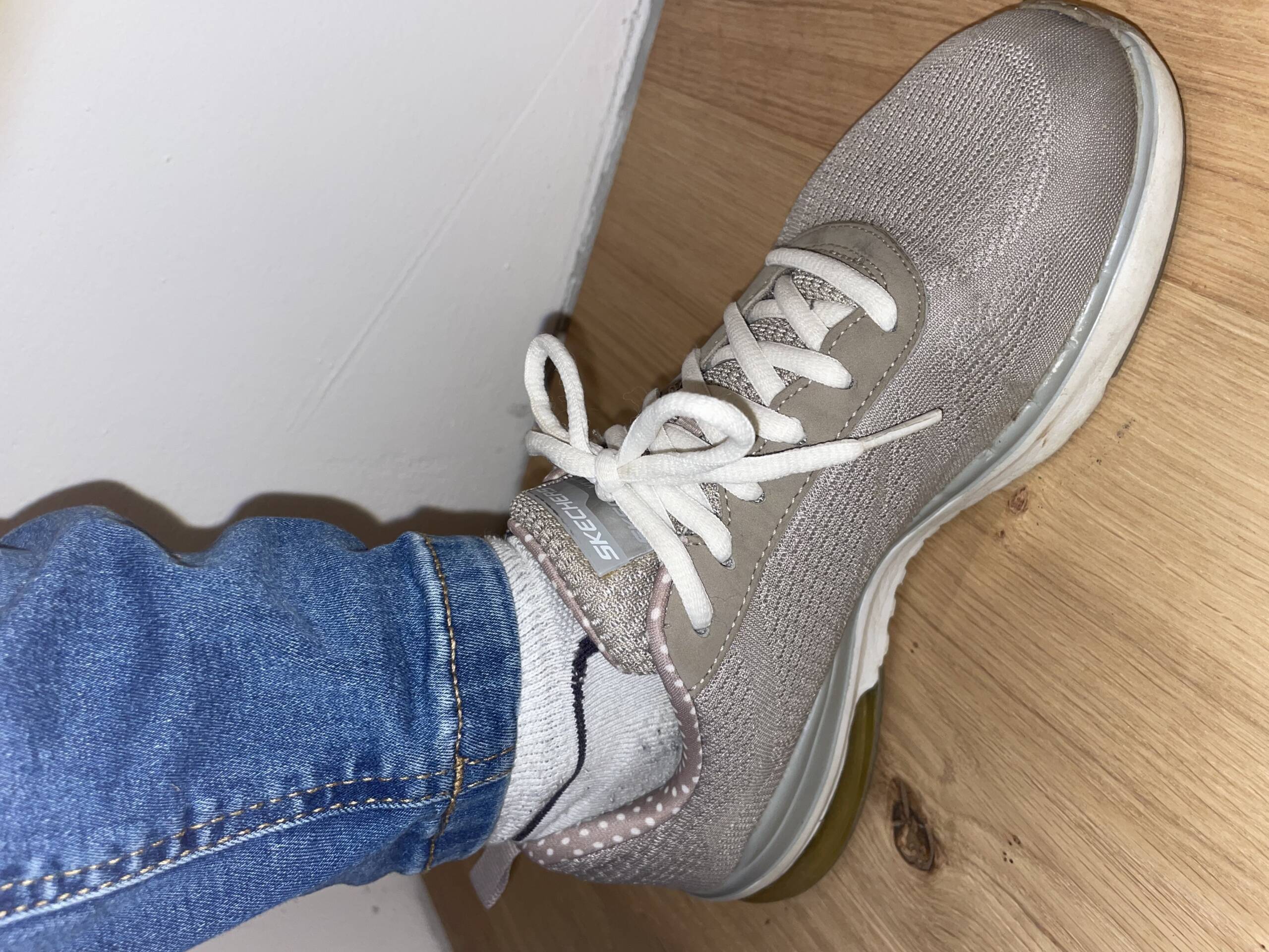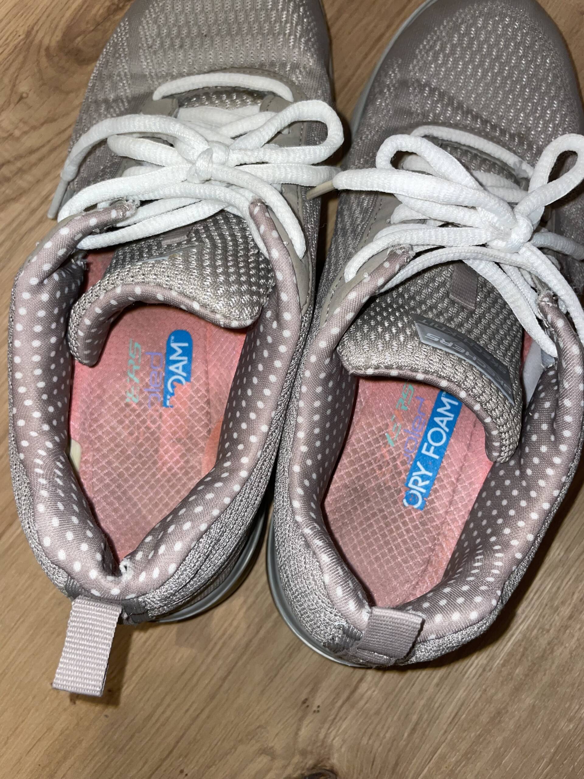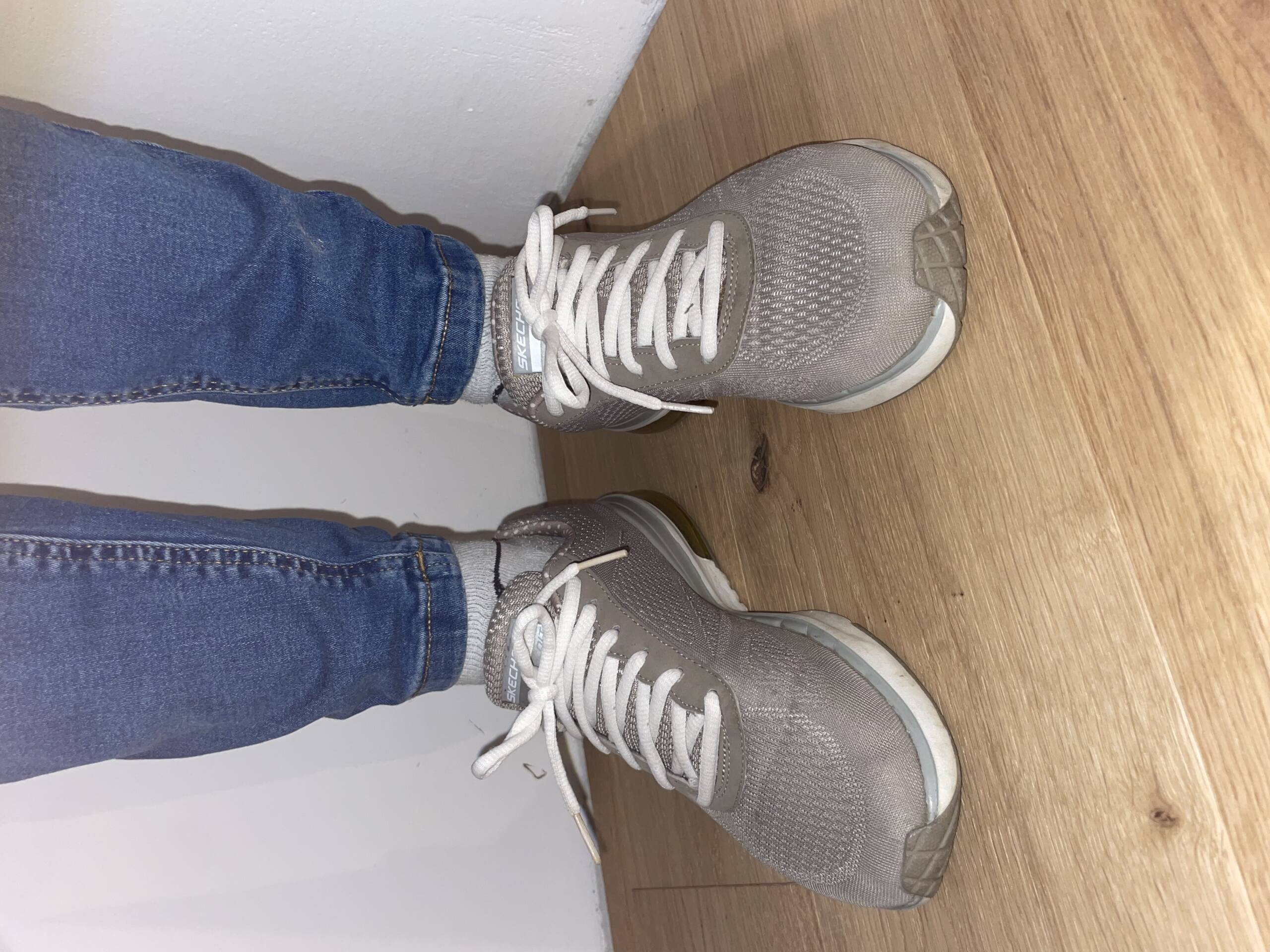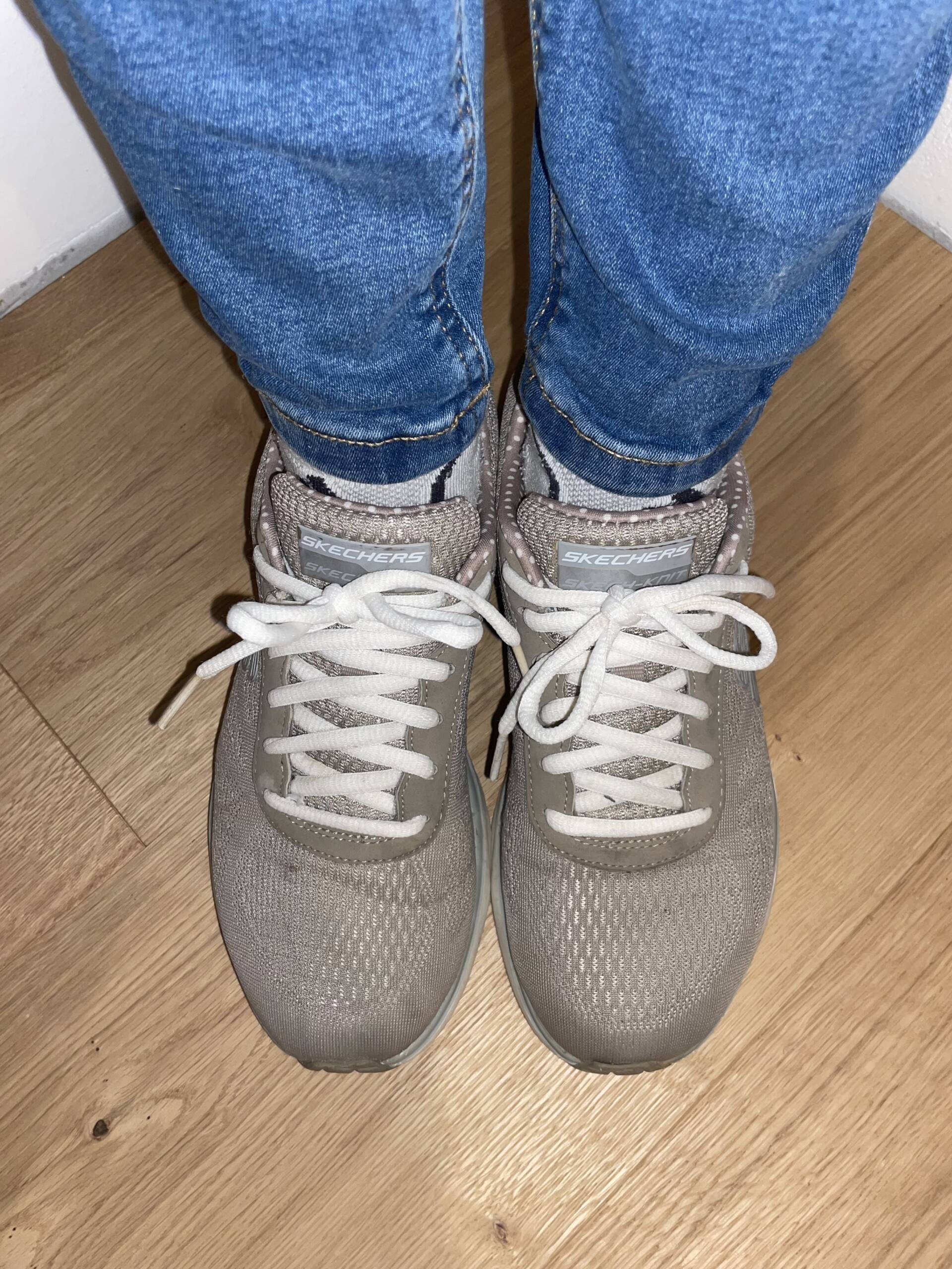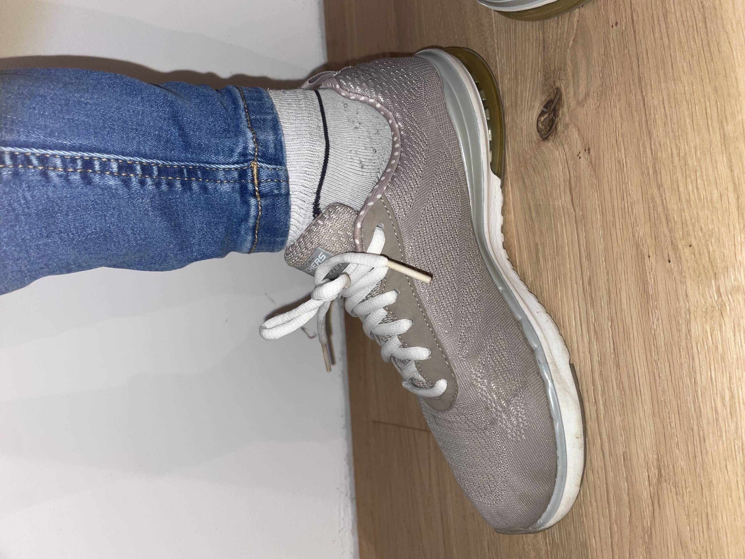 Diese grauen Sketchers standen nicht im Regal – sie waren unterwegs. Lange getragen, Schritt für Schritt, Stunde um Stunde. Die Füße fanden darin Halt, Wärme und Vertrautheit.