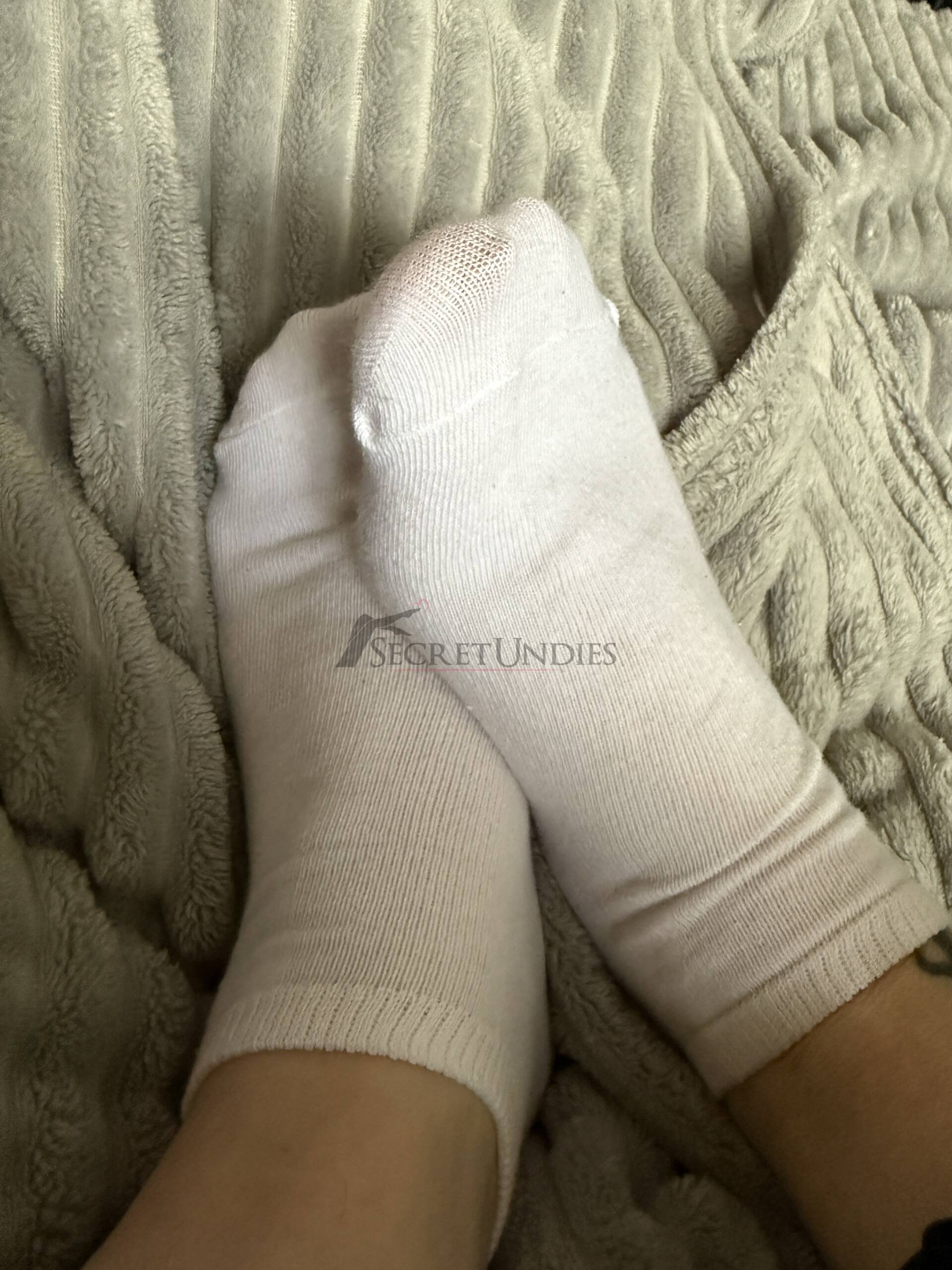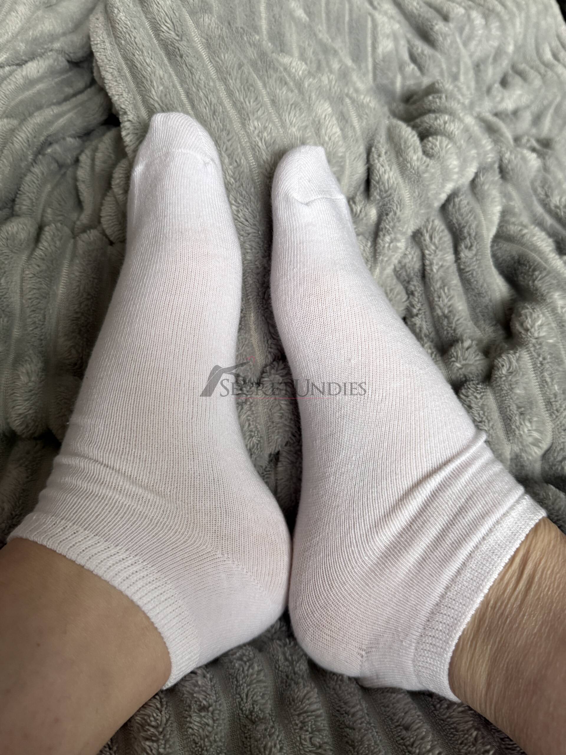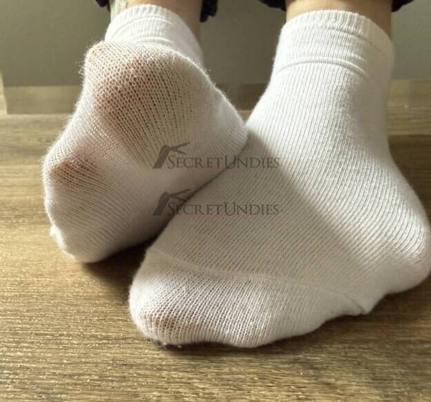 Schlichte Sneaker-Socken, mehrfach getragen und angenehm weich. Perfekt für alle, die auf den natürlichen Duft und das echte Tragegefühl stehen.