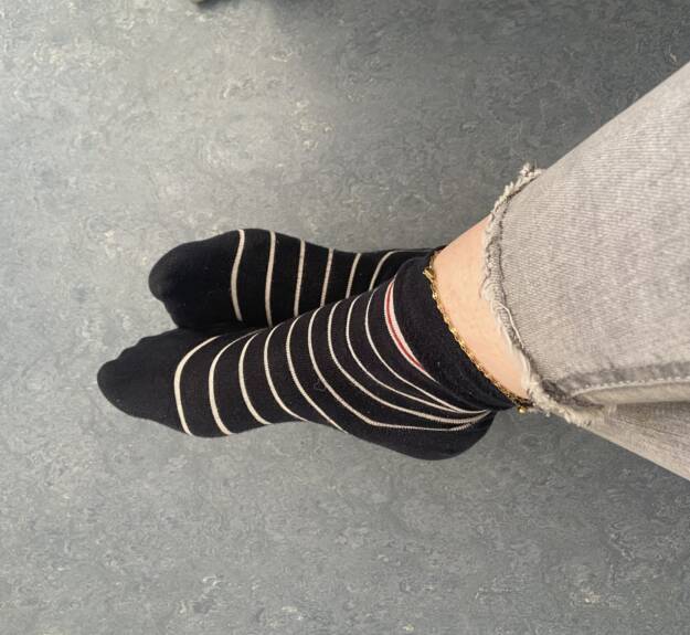 Hier bekommst du von mir getragene Ringel Socken