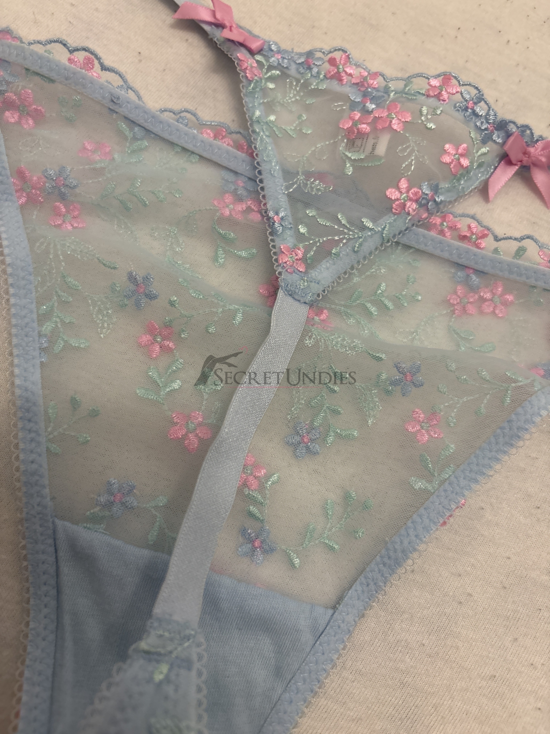 Heiß getragener, hauchzarter Mesh-String mit verführerischer Blumenstickerei. Betont deine Fantasien, sinnlich getragen und bereit, auf deine geheimen Wünsche einzugehen.