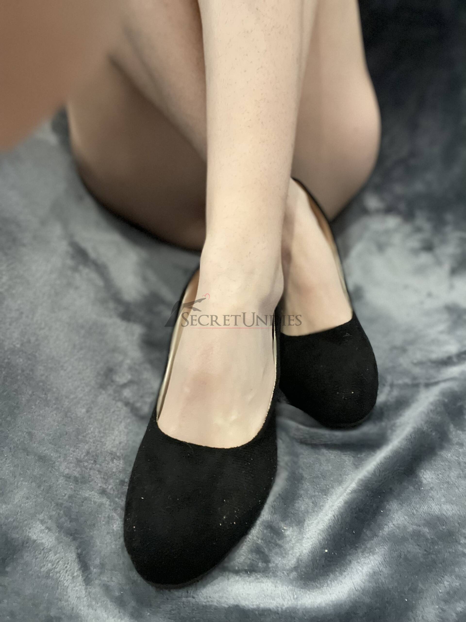 Schwarze Pumps, Absatzhöhe 4–5 cm, Größe 41 (EU 41), Marke unbekannt. Samtweiche Optik, sehr stark getragen, Fußgeruch deutlich wahrnehmbar. Diese Schuhe sind für Menschen gedacht, die eine Leidenschaft für Füße und Schuhe haben und den Wert von getragener Individualität erkennen und respektieren.