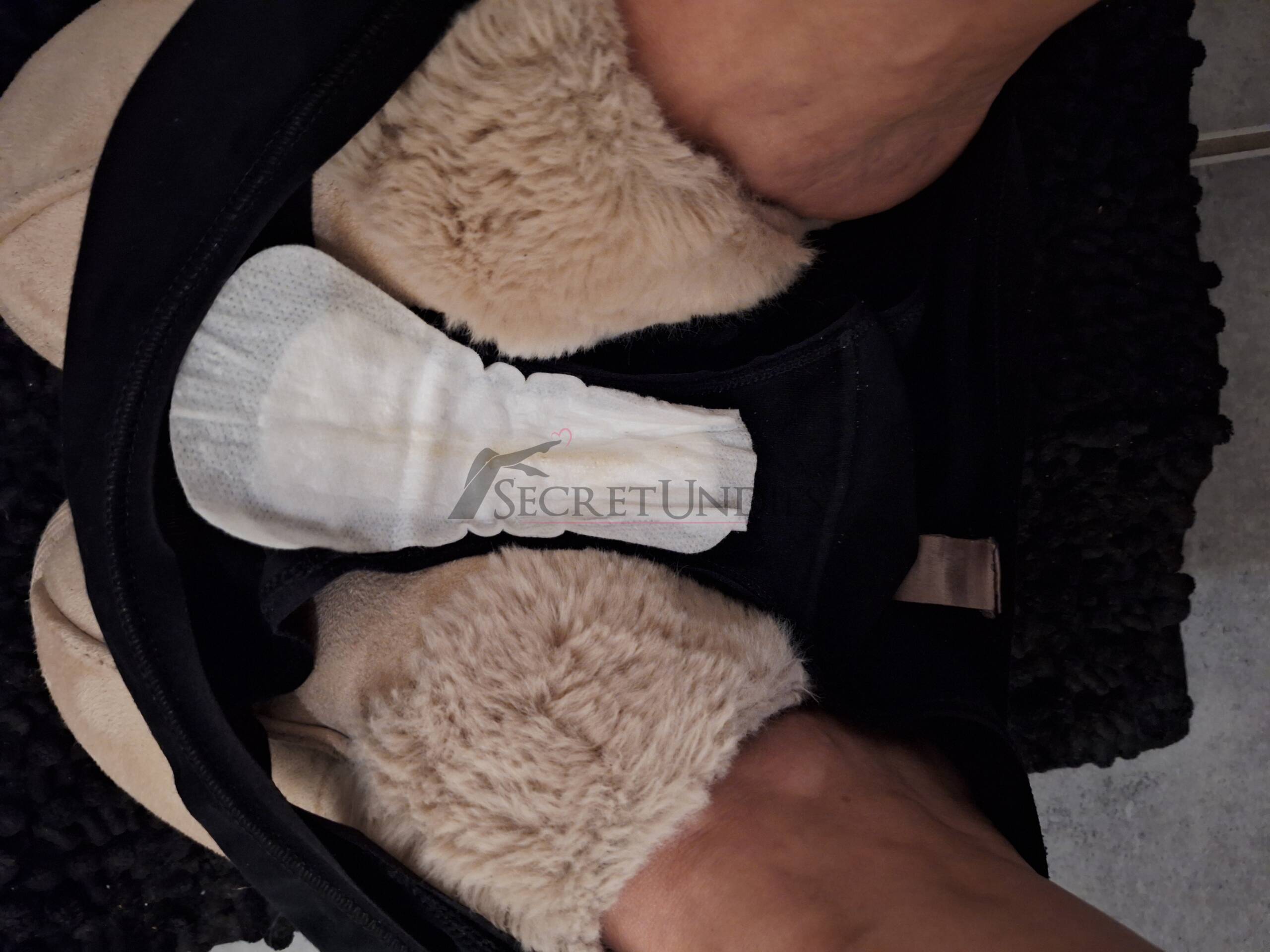 Schwarzer slip mit gebrauchter Slipeinlage. Slip 24h getragen, Einlage 15h