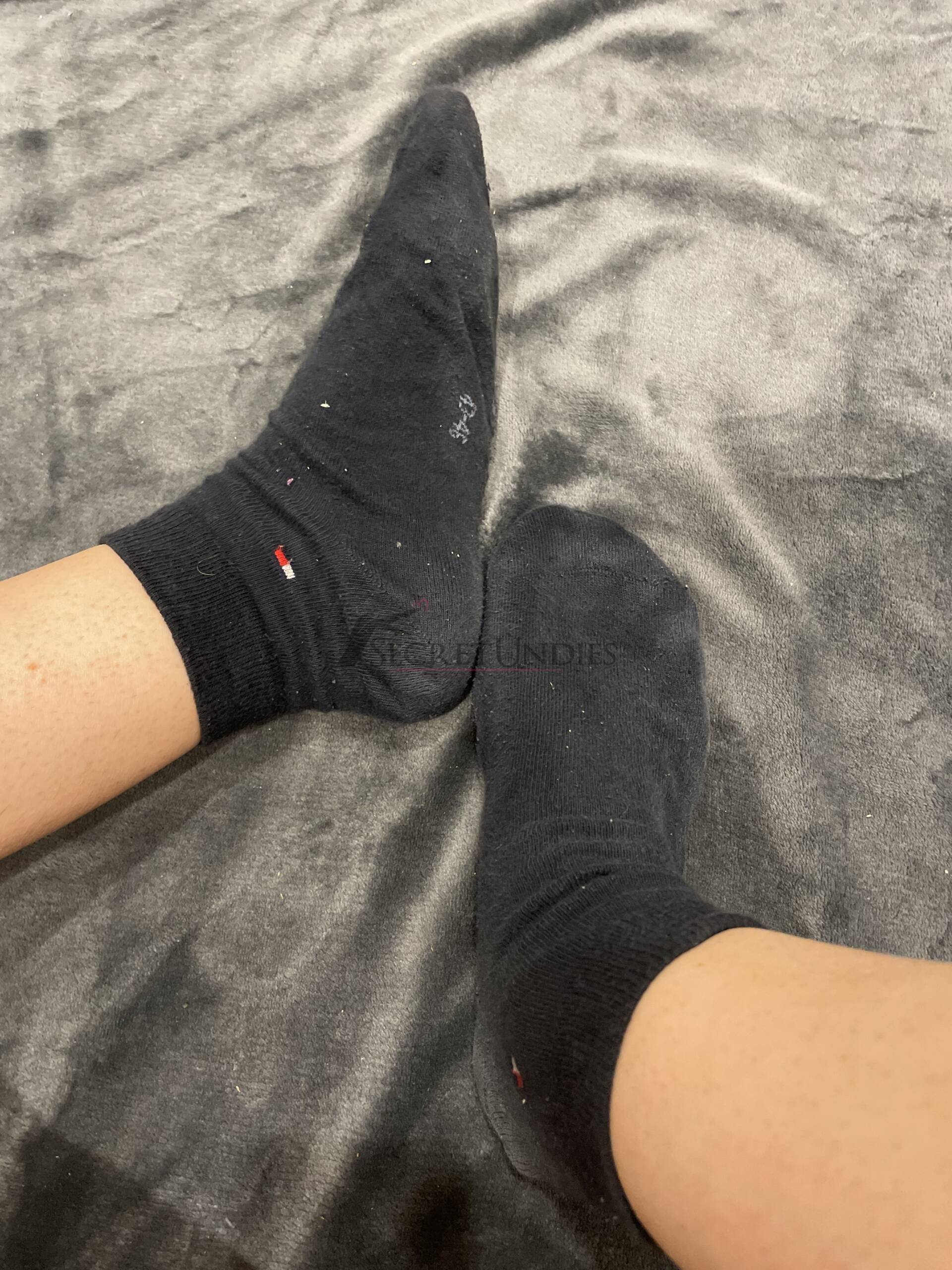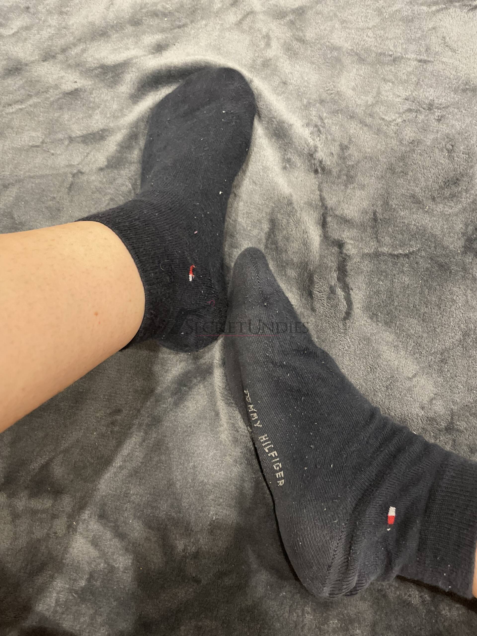 Dunkelblaue Socken in Größe 43–46. Sie wurden oft getragen und sind weich geworden. Es gibt keine Löcher, aber deutlichen Fußgeruch, perfekt für Liebhaber authentischer Socken.