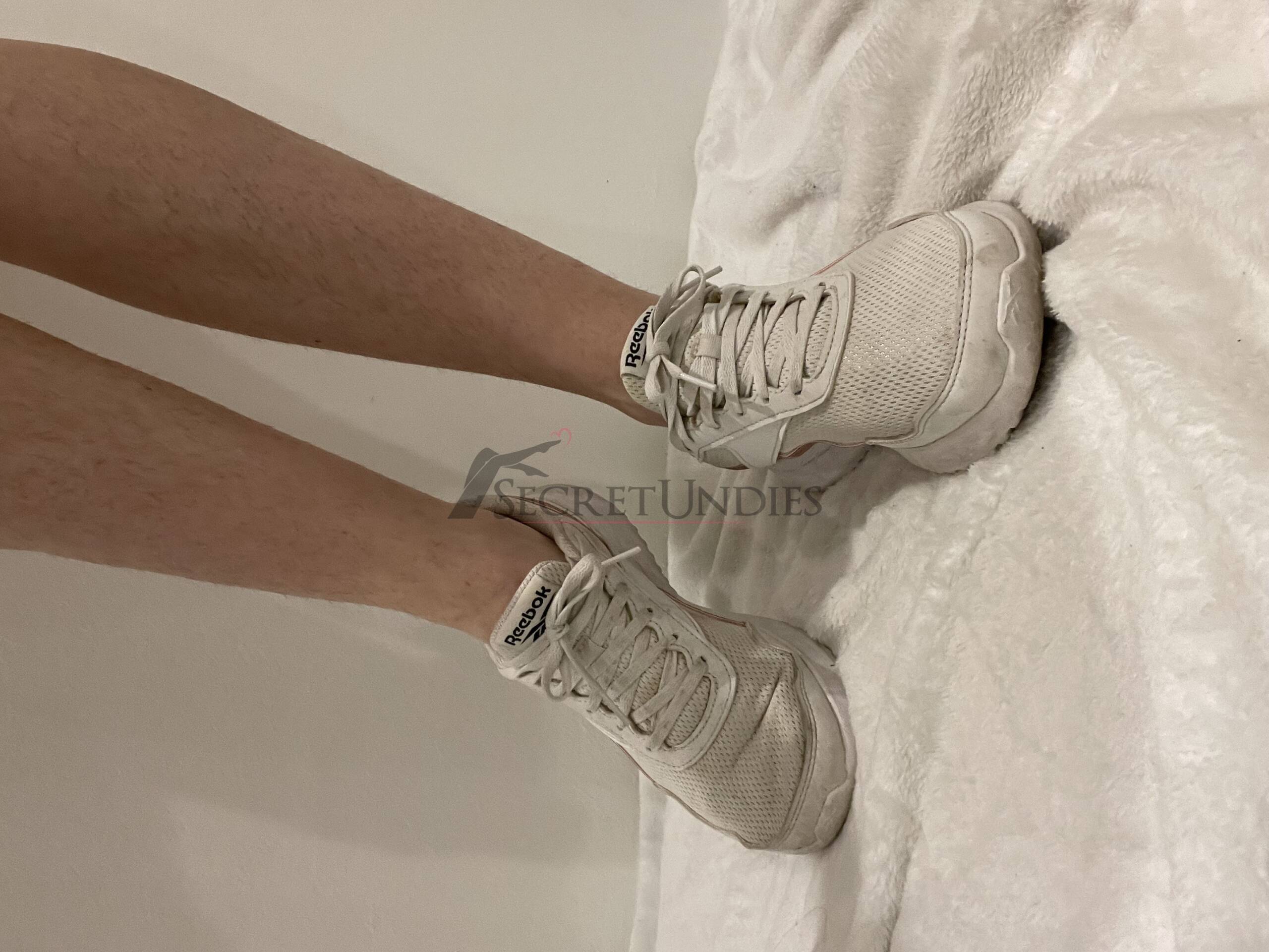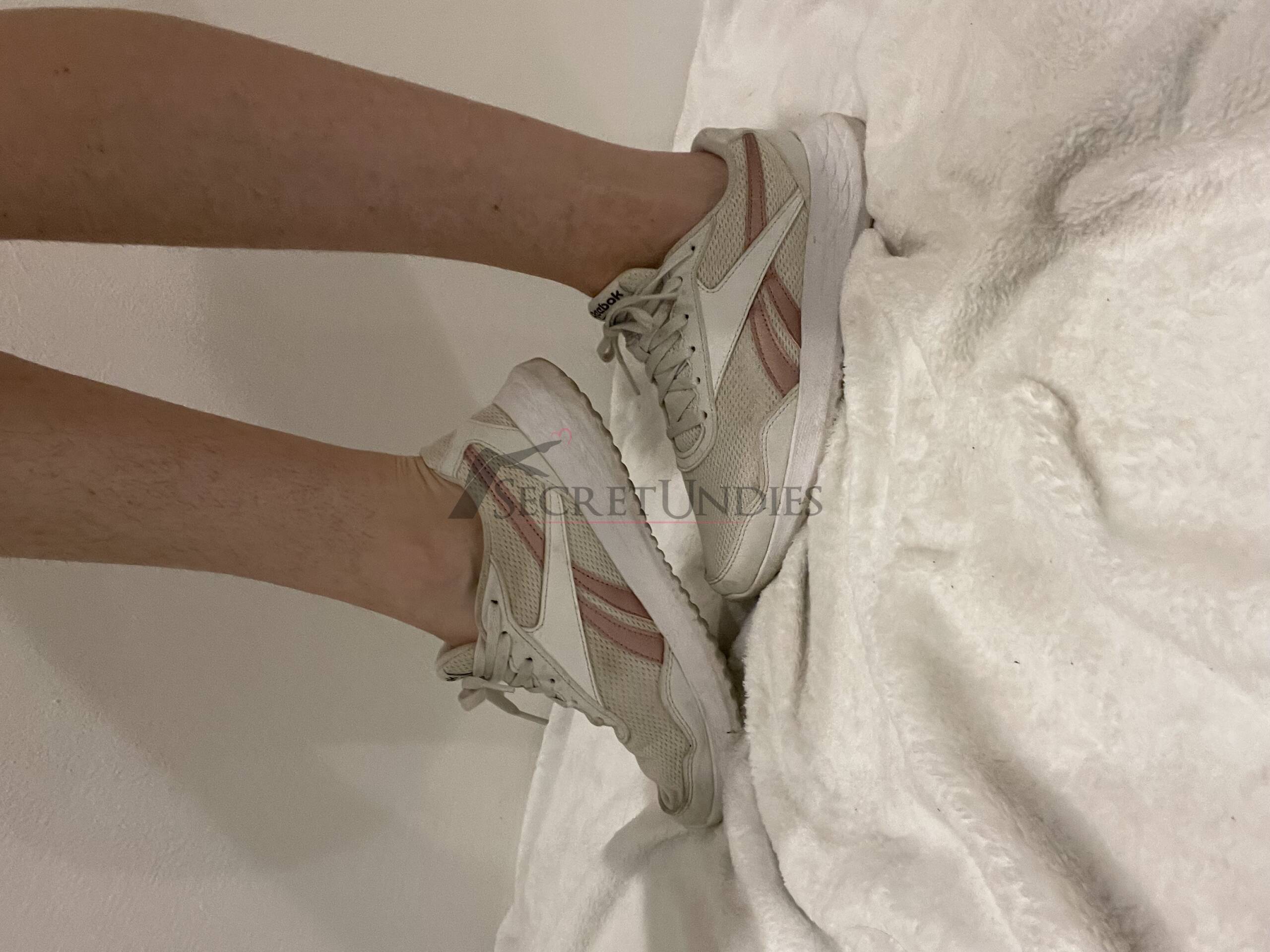 Diese Reebok Turnschuhe, Größe 37, wurden intensiv getragen. Starke Abnutzungen sind sichtbar, besonders an der Sohle. Fußgeruch ist klar wahrnehmbar, was den authentischen Charakter unterstreicht.